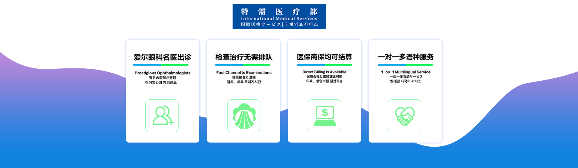 致力于為廣大旅居在上海的有包括支付方式、語言支持、疑難眼病等特需需求的國內(nèi)外客戶提供高品質(zhì)的眼科醫(yī)療、醫(yī)美服務(wù)。